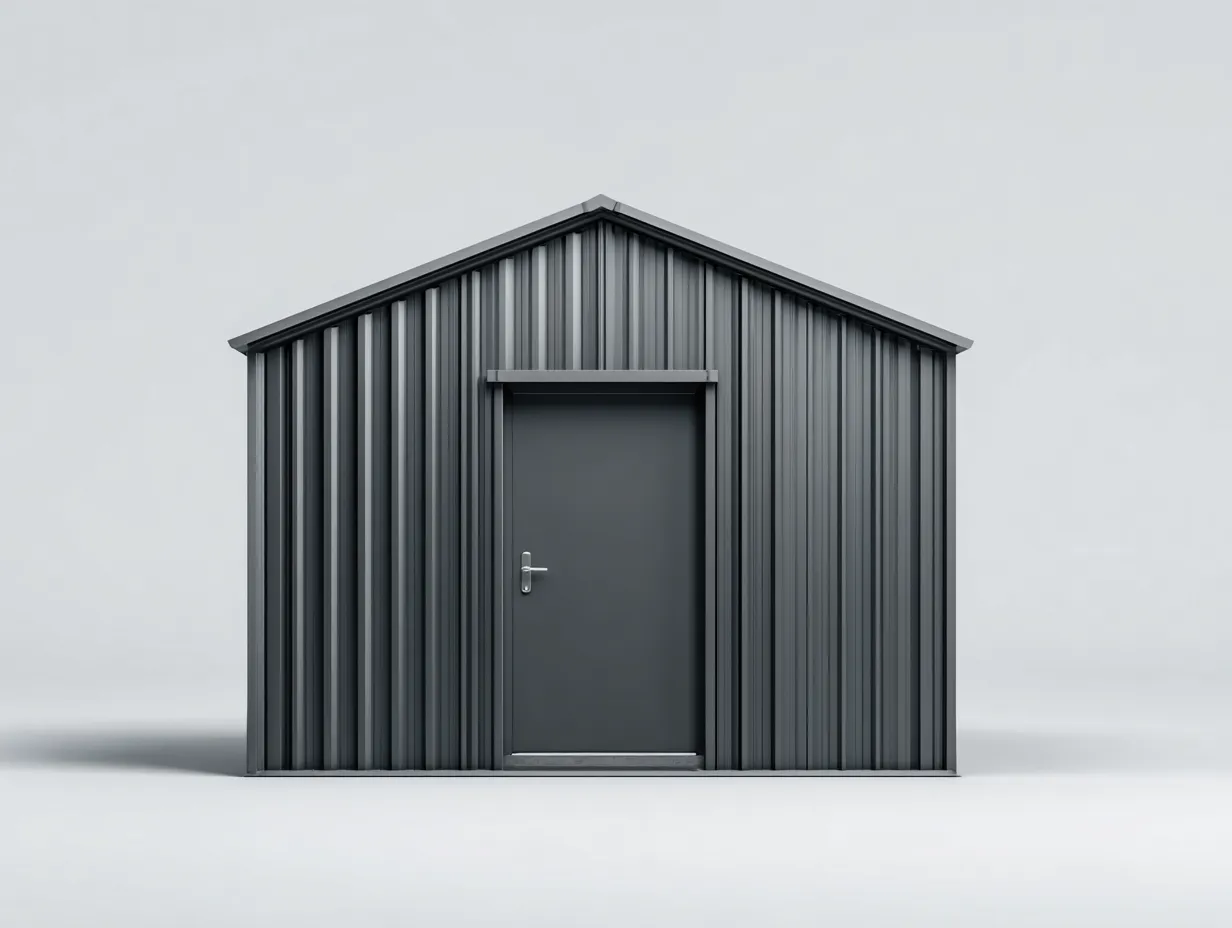 Dieses Gartenhaus aus Metall bietet großzügigen Stauraum für Gartengeräte, Werkzeuge und Zubehör im Außenbereich. Die klare, symmetrische Form und das schlichte Erscheinungsbild sorgen für eine ordentliche und aufgeräumte Wirkung im Garten.